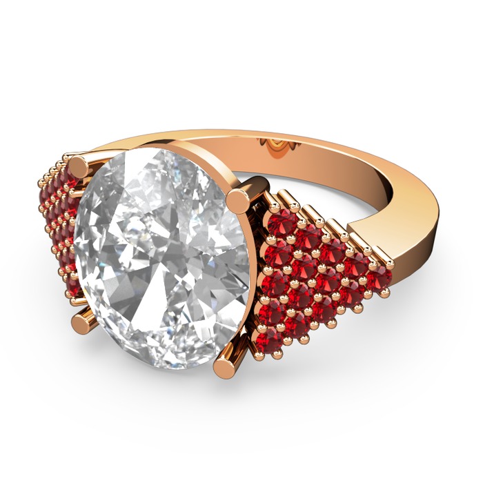 Beyaz zirkon ve garnet 14 ayar rose altın yüzük