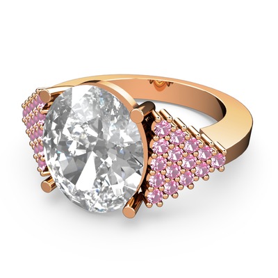 Beyaz zirkon ve pembe kuvars 18 ayar rose altın yüzük