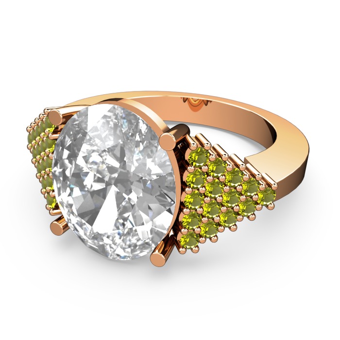 Beyaz zirkon ve peridot 18 ayar rose altın yüzük