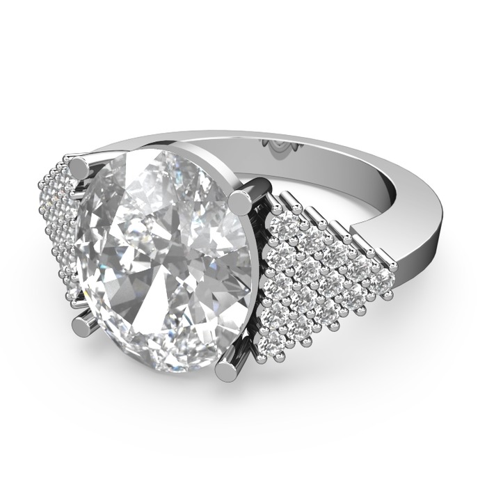 Beyaz zirkon ve pırlanta 8 ayar beyaz altın yüzük (0.45 karat)