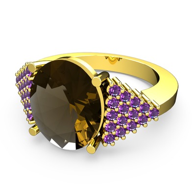 Dumanlı kuvars ve ametist 18 ayar altın yüzük