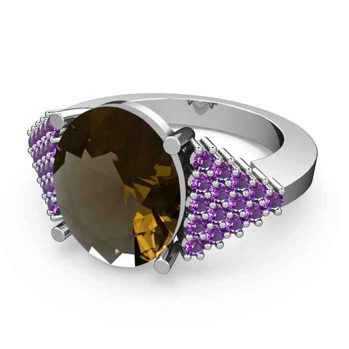 Dumanlı kuvars ve ametist 925 ayar gümüş yüzük