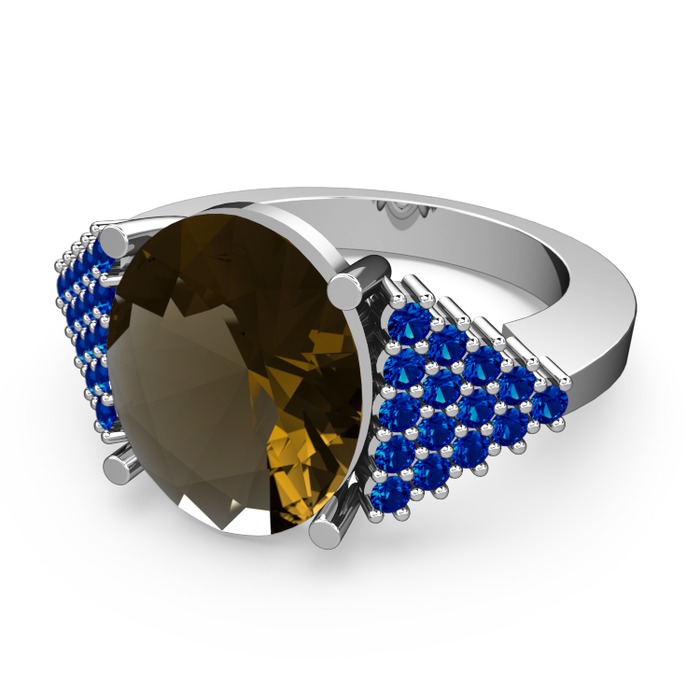 Dumanlı kuvars ve lab safir 8 ayar beyaz altın yüzük