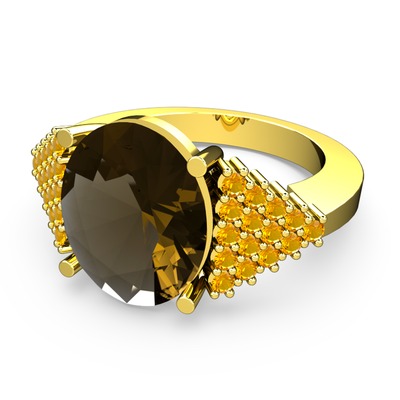 Dumanlı kuvars ve sitrin 18 ayar altın yüzük