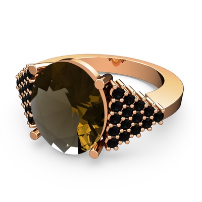 Dumanlı kuvars ve siyah zirkon 14 ayar rose altın yüzük