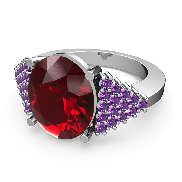 Garnet ve ametist 14 ayar beyaz altın yüzük
