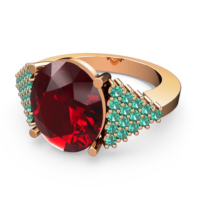 Garnet ve yeşil kuvars 8 ayar rose altın yüzük