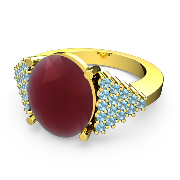 Kök yakut ve akuamarin 18 ayar altın yüzük