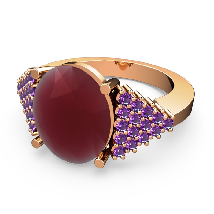 Kök yakut ve ametist 925 ayar rose altın kaplama gümüş yüzük