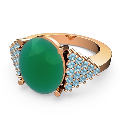 Kök zümrüt ve akuamarin 14 ayar rose altın yüzük
