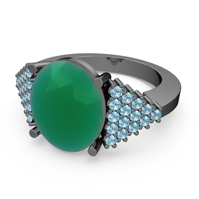 Kök zümrüt ve akuamarin 925 ayar siyah rodyum kaplama gümüş yüzük