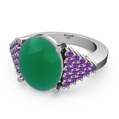 Kök zümrüt ve ametist 18 ayar beyaz altın yüzük
