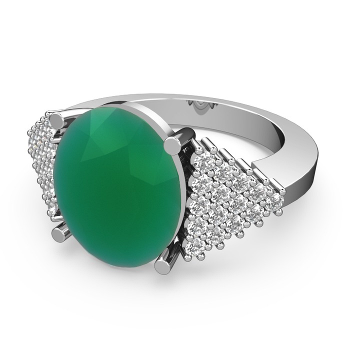 Kök zümrüt ve beyaz zirkon 8 ayar beyaz altın yüzük