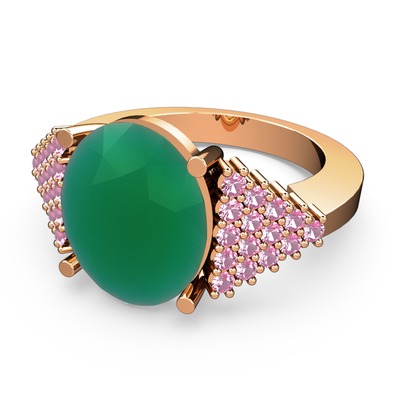 Kök zümrüt ve pembe kuvars 18 ayar rose altın yüzük