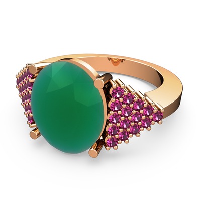 Kök zümrüt ve rodolit garnet 8 ayar rose altın yüzük