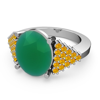 Kök zümrüt ve sitrin 14 ayar beyaz altın yüzük