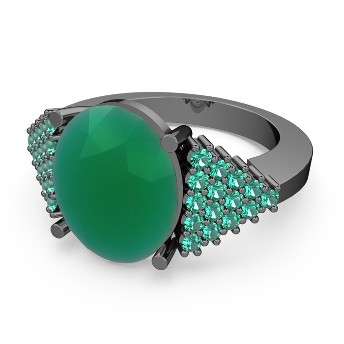 Kök zümrüt ve yeşil kuvars 925 ayar siyah rodyum kaplama gümüş yüzük