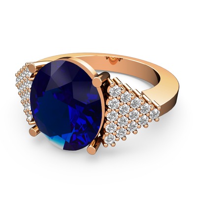 Lab safir ve pırlanta 18 ayar rose altın yüzük (0.45 karat)