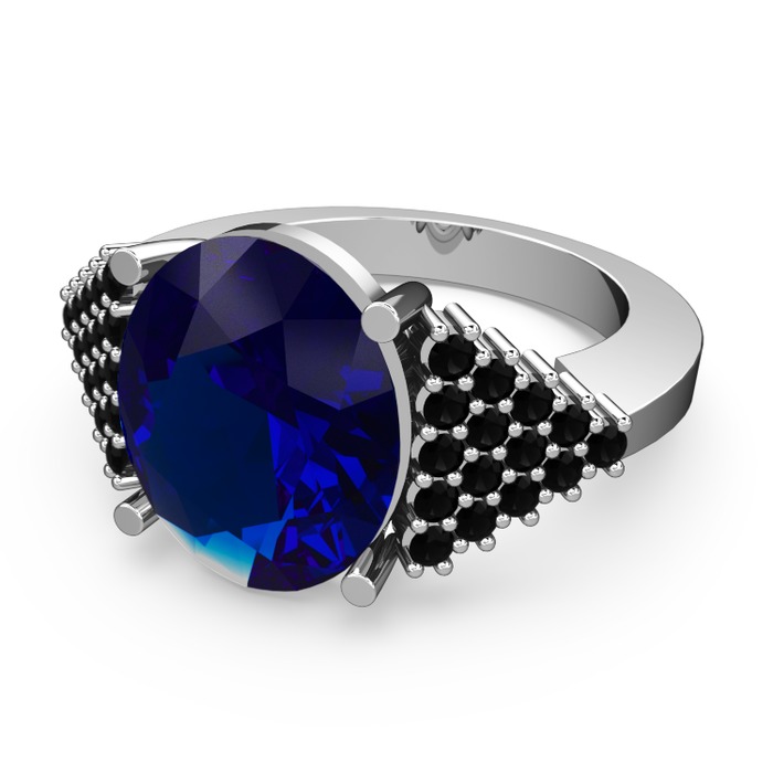 Lab safir ve siyah zirkon 8 ayar beyaz altın yüzük