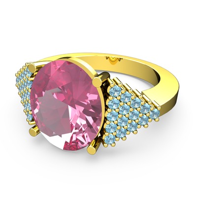 Pembe kuvars ve akuamarin 14 ayar altın yüzük
