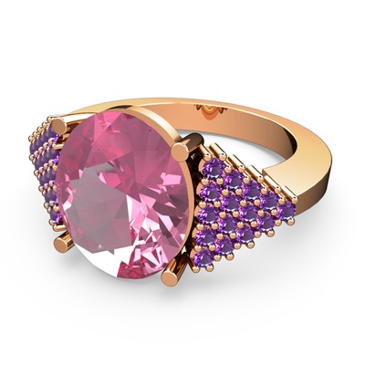 Pembe kuvars ve ametist 925 ayar rose altın kaplama gümüş yüzük