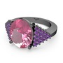 Pembe kuvars ve ametist 925 ayar siyah rodyum kaplama gümüş yüzük