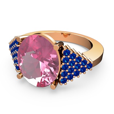 Pembe kuvars ve lab safir 925 ayar rose altın kaplama gümüş yüzük