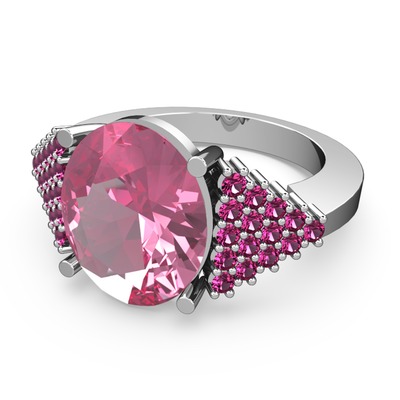 Pembe kuvars ve rodolit garnet 14 ayar beyaz altın yüzük