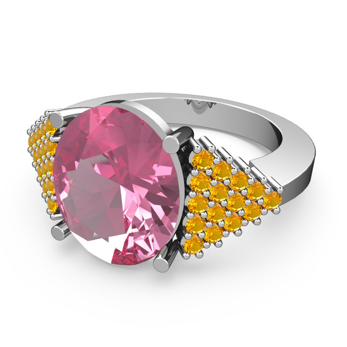 Pembe kuvars ve sitrin 14 ayar beyaz altın yüzük
