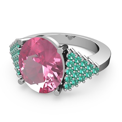 Pembe kuvars ve yeşil kuvars 14 ayar beyaz altın yüzük