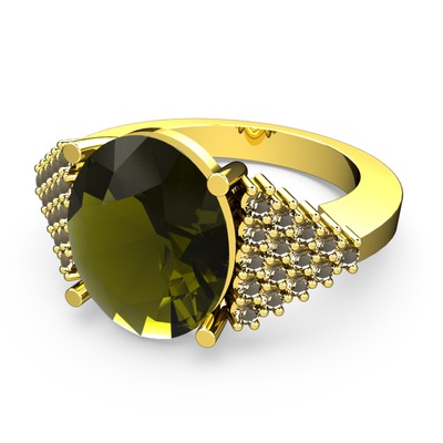 Peridot ve dumanlı kuvars 14 ayar altın yüzük