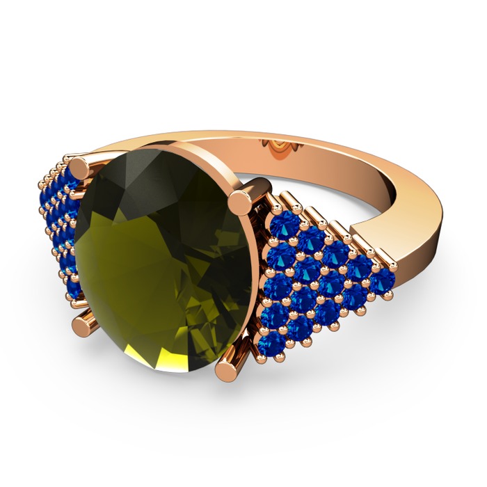 Peridot ve lab safir 18 ayar rose altın yüzük
