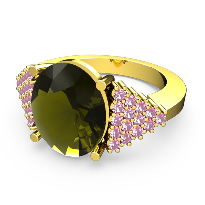 Peridot ve pembe kuvars 8 ayar altın yüzük