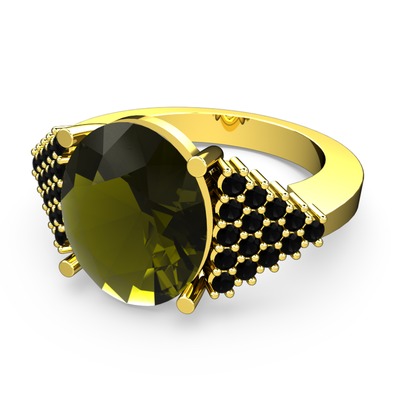 Peridot ve siyah zirkon 14 ayar altın yüzük