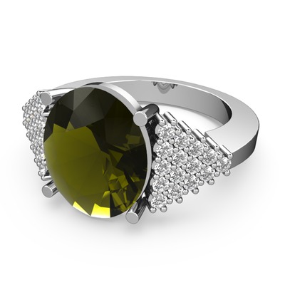 Peridot ve swarovski 8 ayar beyaz altın yüzük