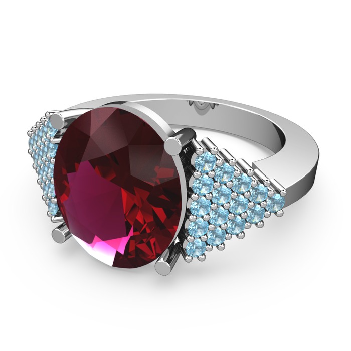 Rodolit garnet ve akuamarin 18 ayar beyaz altın yüzük