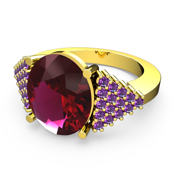 Rodolit garnet ve ametist 18 ayar altın yüzük