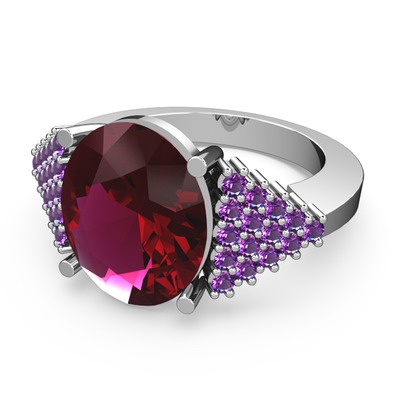 Rodolit garnet ve ametist 18 ayar beyaz altın yüzük