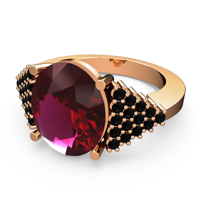Rodolit garnet ve siyah zirkon 14 ayar rose altın yüzük