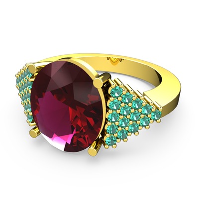 Rodolit garnet ve yeşil kuvars 14 ayar altın yüzük