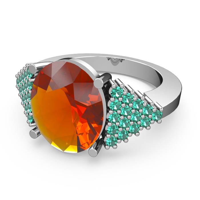 Sitrin ve yeşil kuvars 8 ayar beyaz altın yüzük