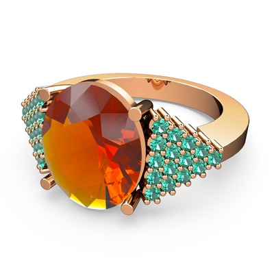 Sitrin ve yeşil kuvars 925 ayar rose altın kaplama gümüş yüzük