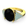 Siyah zirkon ve akuamarin 8 ayar altın yüzük
