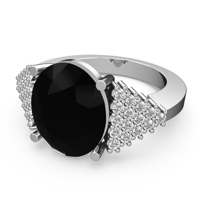 Siyah zirkon ve pırlanta 925 ayar gümüş yüzük (0.45 karat)