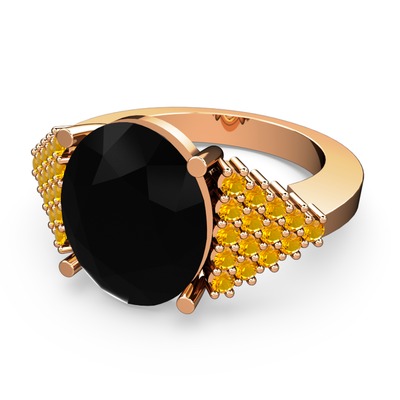 Siyah zirkon ve sitrin 925 ayar rose altın kaplama gümüş yüzük
