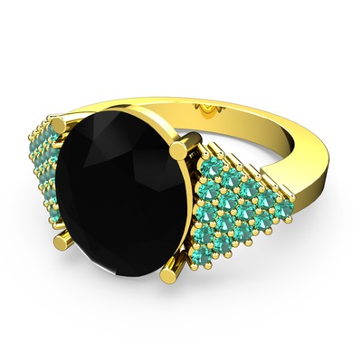 Siyah zirkon ve yeşil kuvars 14 ayar altın yüzük