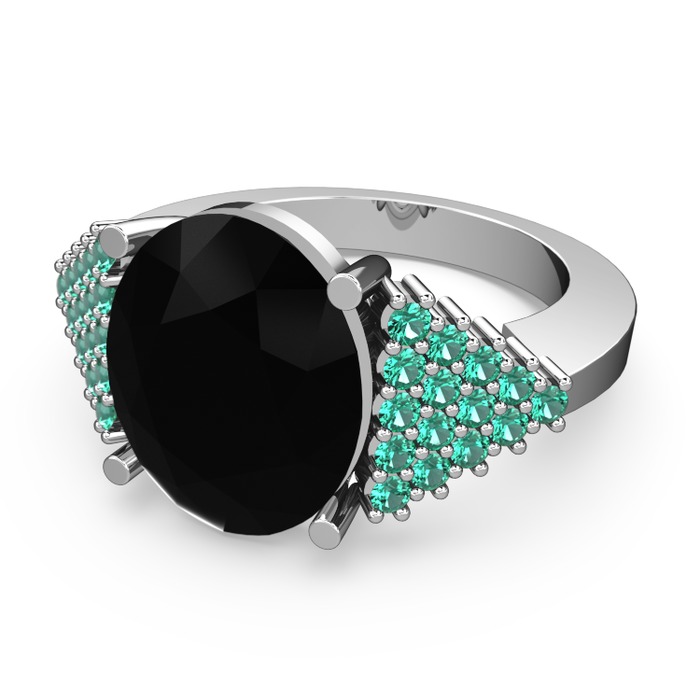 Siyah zirkon ve yeşil kuvars 925 ayar gümüş yüzük