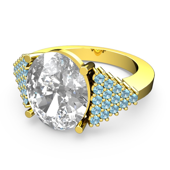Swarovski ve akuamarin 14 ayar altın yüzük