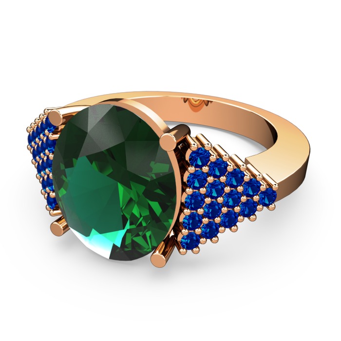 Yeşil kuvars ve lab safir 925 ayar rose altın kaplama gümüş yüzük