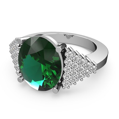 Yeşil kuvars ve pırlanta 18 ayar beyaz altın yüzük (0.45 karat)